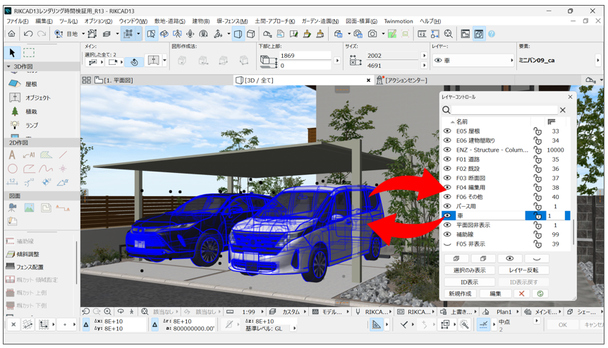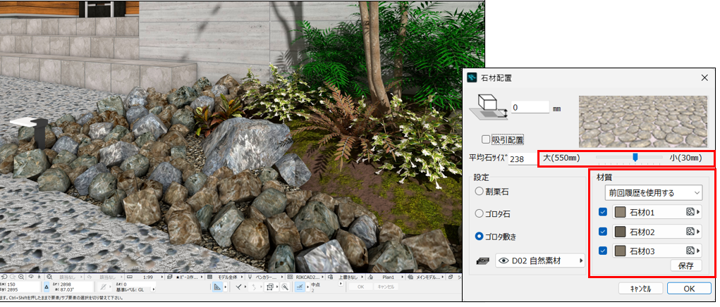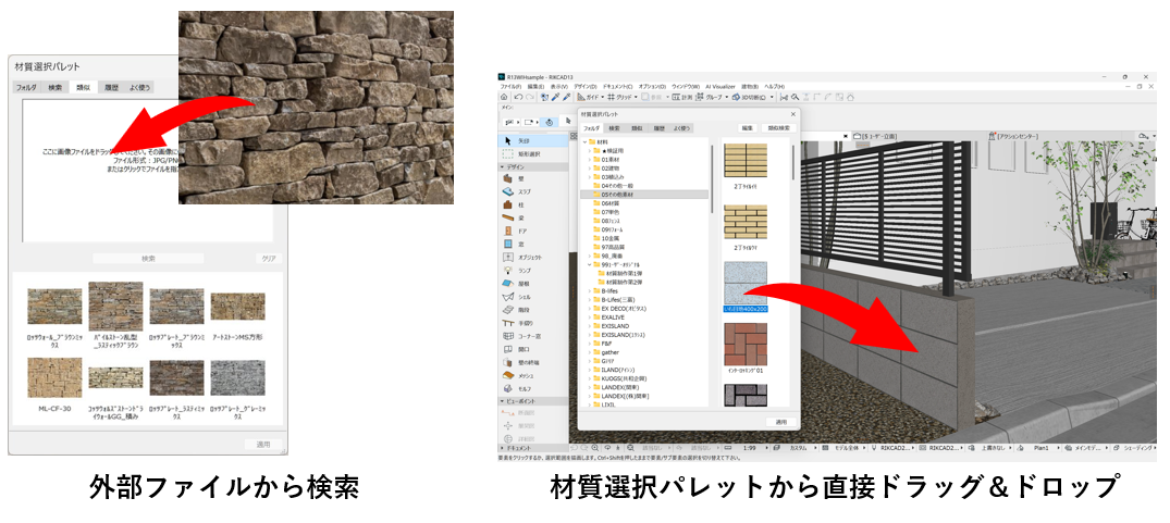 オブジェクト編集パレットに新たに検索機能が加わり、より作業効率がアップします。※オブジェクト、植栽、ランプ、窓、ドアに対応