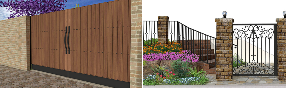 ▲左:板塀と取っ手をモルフで作成 右:アイアン門扉とフェンスをモルフで作成(提供:banana creator)
